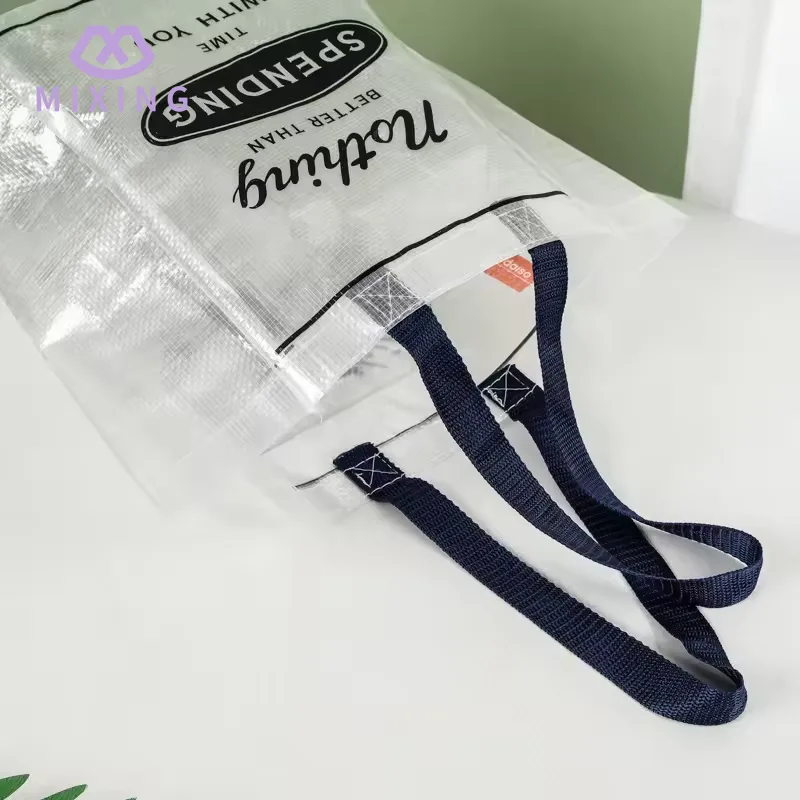 क्लियर पीपी बुना टोट बैग का पारदर्शी डिज़ाइन दैनिक उपयोग में सुविधा लाता है, जब बैग के अंदर की वस्तुओं तक पहुंचना आवश्यक होता है, तो बार-बार इधर-उधर जाने की आवश्यकता नहीं होती है। पारदर्शी सामग्री के माध्यम से, वस्तुओं का स्थान सीधे देखा जा सकता है, जिससे समय की बचत हो सकती है और दक्षता में सुधार हो सकता है।